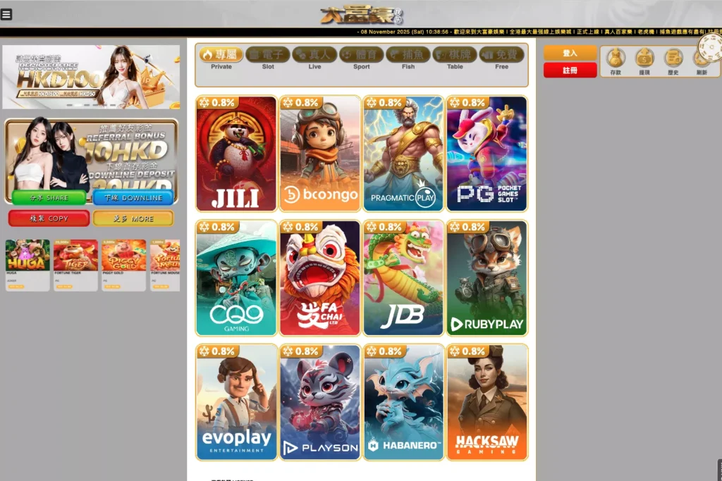 平台擁有上百款不同主題的老虎機,從經典三軸到現代多線影片機一應俱全。部分遊戲還設有 累積獎池(Jackpot),讓幸運一擊就能改變命運。